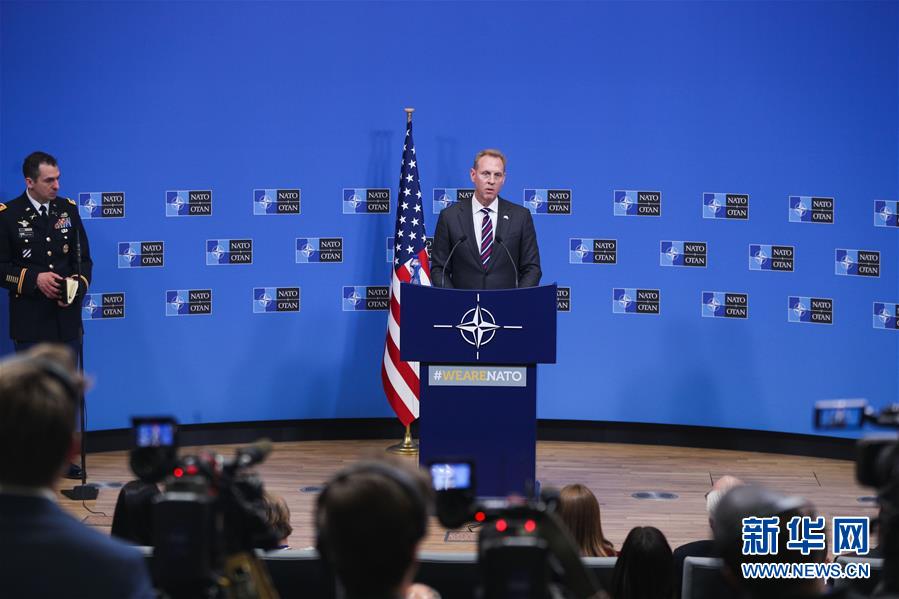 2月14日,在比利时首都布鲁塞尔的北约总部,美国代理国防部长沙纳汉在北约国防部长会议后出席新闻发布会。 北约国防部长会议当天在位于比利时首都布鲁塞尔的北约总部结束。 新华社记者郑焕松摄