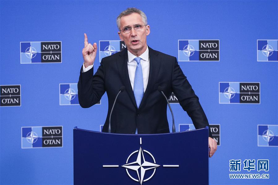 2月14日,在比利时首都布鲁塞尔的北约总部,北约秘书长斯托尔滕贝格在北约国防部长会议后出席新闻发布会。 北约国防部长会议当天在位于比利时首都布鲁塞尔的北约总部结束。 新华社记者郑焕松摄