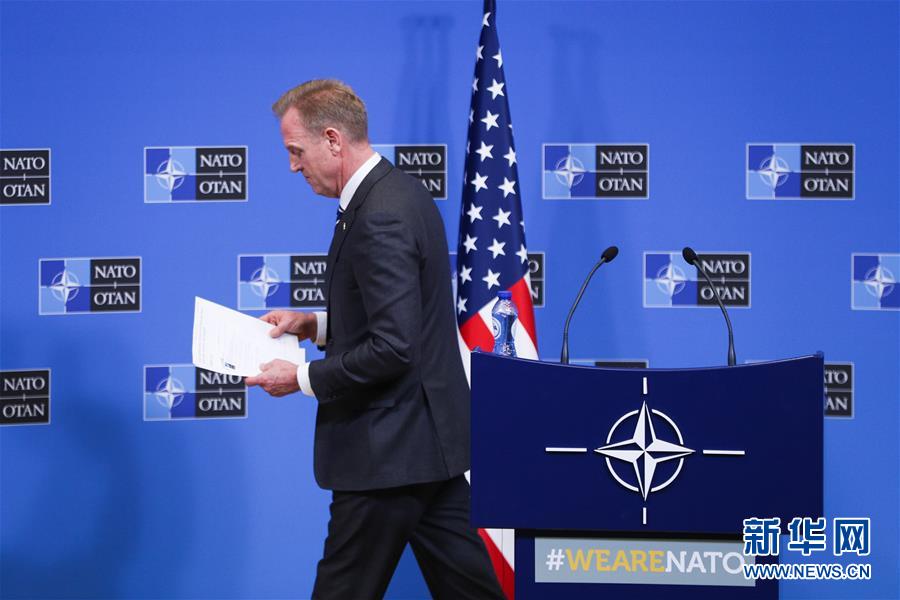 2月14日,在比利时首都布鲁塞尔的北约总部,美国代理国防部长沙纳汉在北约国防部长会议后的新闻发布会结束后离开。 北约国防部长会议当天在位于比利时首都布鲁塞尔的北约总部结束。 新华社记者郑焕松摄