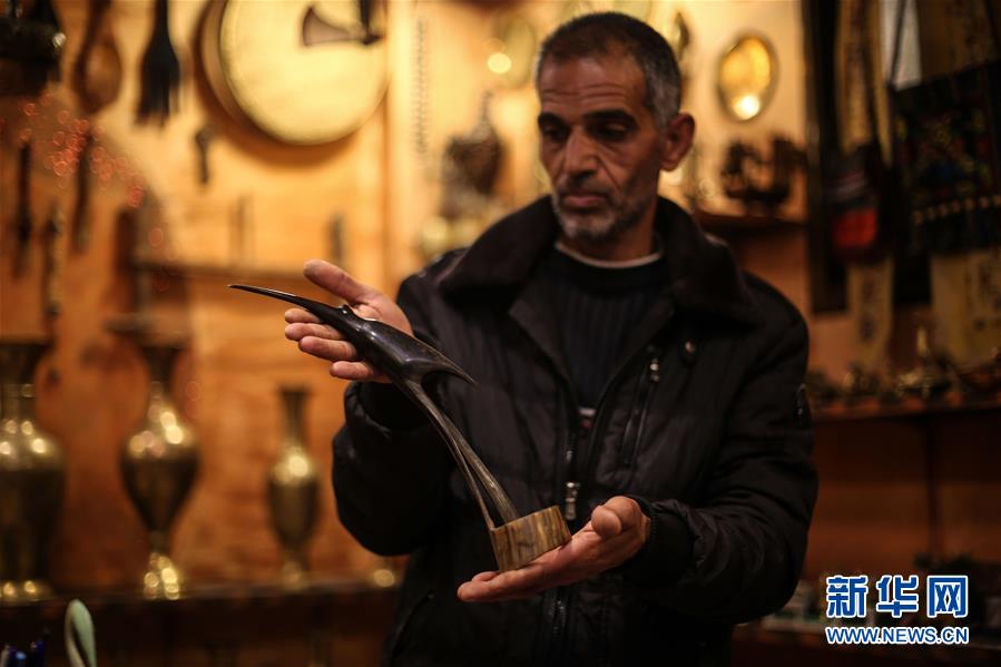 2月9日,法德勒在加沙城的家中展示藏品。 法德勒是巴勒斯坦的一名民间收藏家,过去的30年间他收集了1000多件收藏品,其中不少是文物。法德勒把自己的家改造成博物馆供人们参观。 新华社发