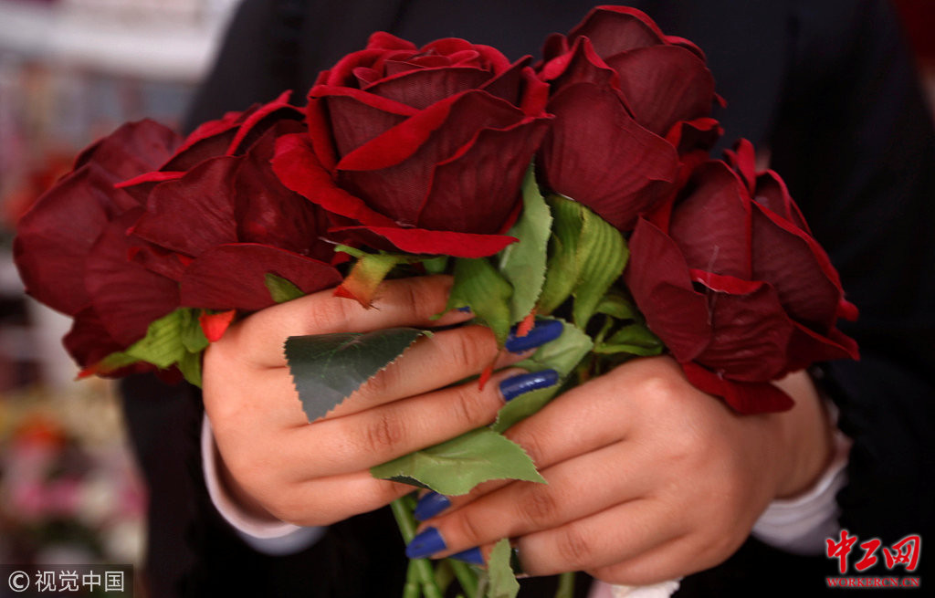 世界各国民众欢庆情人节到来 各色鲜花受热捧