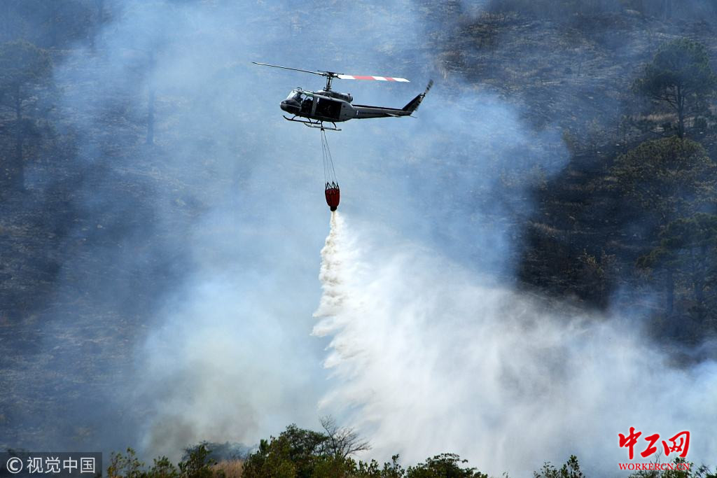 洪都拉斯爆发大规模森林火灾 当局出动空军直升机灭火
