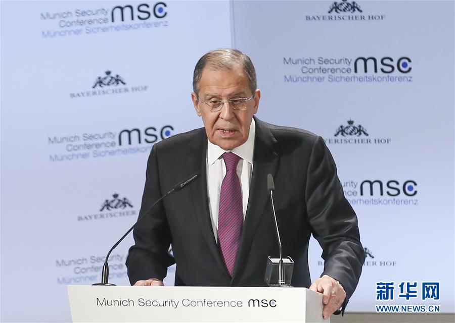 2月16日,在德国慕尼黑,俄罗斯外交部长拉夫罗夫在慕尼黑安全会议上发表讲话。
