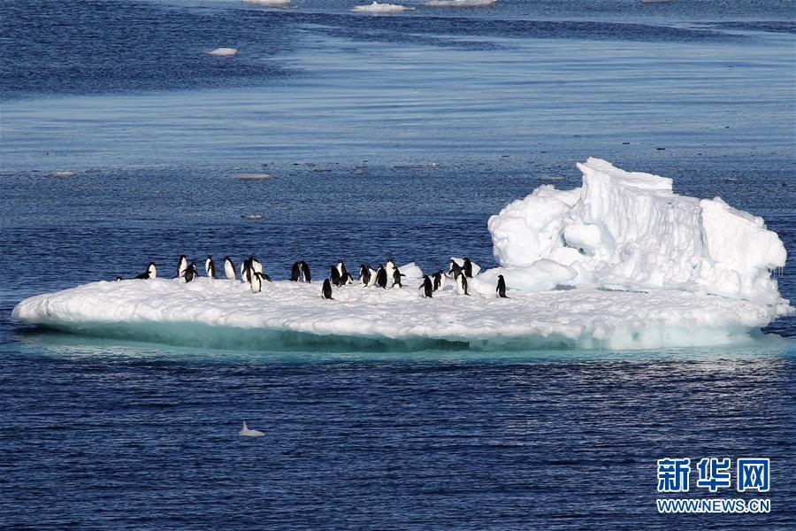 这是2月15日拍摄的南极小冰山上的企鹅群。新华社记者 刘诗平摄
