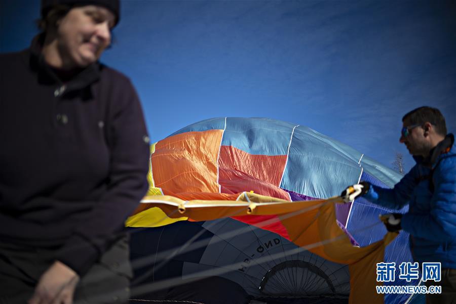 2月17日,在瑞士萨特尔,人们准备放飞热气球。 当日,瑞士萨特尔举办热气球节,吸引了众多游客参观。 新华社发(米歇尔⋅立米纳摄)