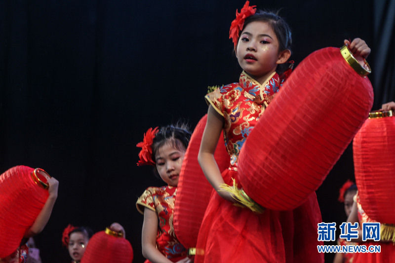 来自华人社团的小演员们在表演灯笼舞。拉赫尔·帕特拉索摄
