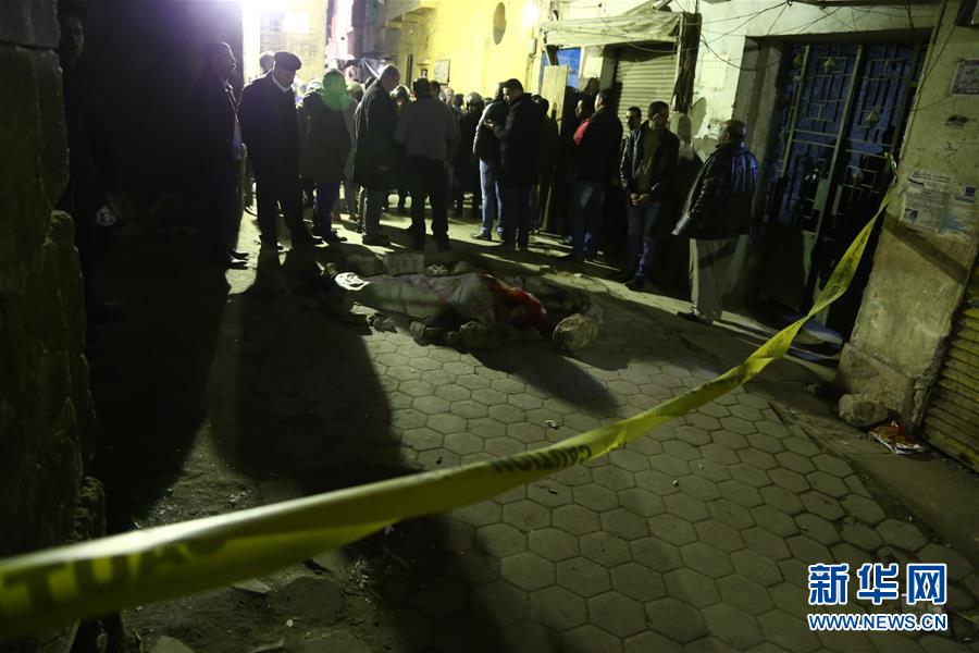 2月19日,在埃及首都开罗,警察在爆炸现场工作。 埃及内政部18日晚发表声明说,埃及首都开罗老城区当晚发生一起爆炸,造成两名警察和一名恐怖分子死亡。声明说,这名恐怖分子在被警方抓获后引爆了爆炸装置,还有3名警察受伤。 新华社发(艾哈迈德·戈马摄)