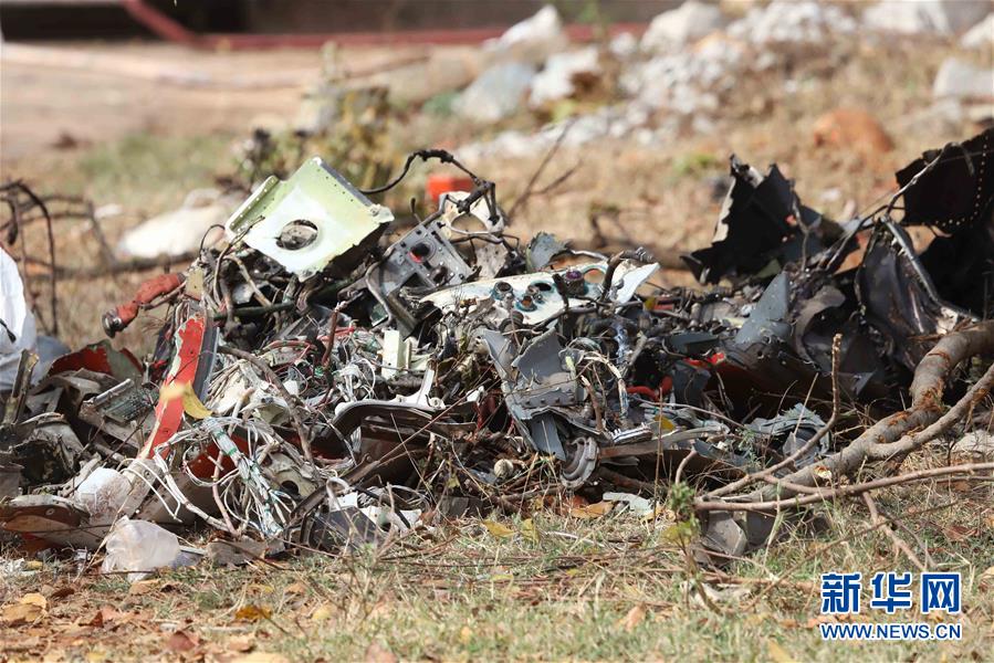 这是2月19日在印度班加罗尔坠机现场拍摄的飞机残骸。新华社发