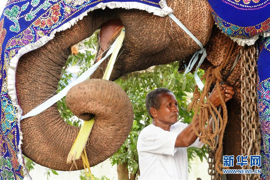 2月18日,在斯里兰卡首都科伦坡,贾亚拉夫纳为25岁的大象“坎贾纳”参加游行典礼“穿衣打扮”。“坎贾纳”来自斯里兰卡中部库鲁内格勒,它的主人贾亚拉夫纳说,他们走了4天才抵达科伦坡。 位于斯里兰卡首都科伦坡市中心的贝拉湖畔平日里行人不多、十分安宁。不过,在每年2月佛教节日“纳瓦姆月圆节”期间,这里都会因一些远方“贵宾”安营扎寨而失去以往的宁静,它们就是受邀参加月圆节游行的几十头大象。 新华社记者 唐璐 摄