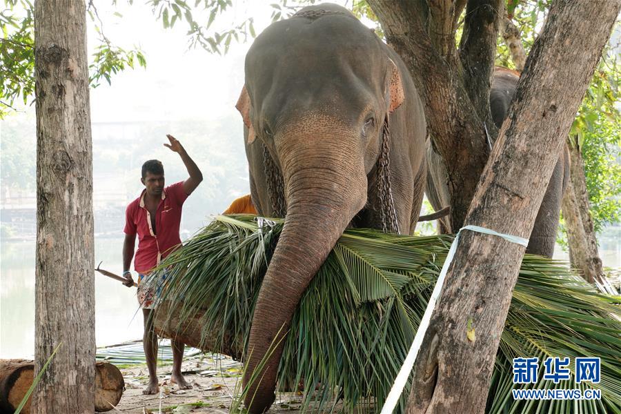2月18日,在斯里兰卡首都科伦坡贝拉湖大象营地,一头大象搬运大捆棕榈叶。 位于斯里兰卡首都科伦坡市中心的贝拉湖畔平日里行人不多、十分安宁。不过,在每年2月佛教节日“纳瓦姆月圆节”期间,这里都会因一些远方“贵宾”安营扎寨而失去以往的宁静,它们就是受邀参加月圆节游行的几十头大象。 新华社记者 唐璐 摄