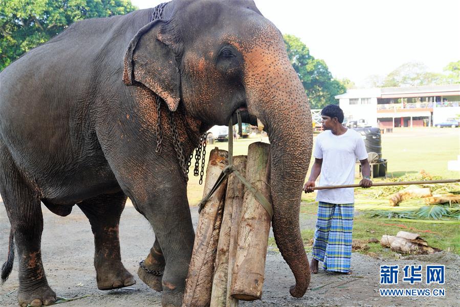 2月19日,在斯里兰卡首都科伦坡,25岁的大象“坎贾纳”搬运作为自己口粮的三根木头。大象用象脚大力踩踏后,用鼻子将木头丝塞进嘴里。 位于斯里兰卡首都科伦坡市中心的贝拉湖畔平日里行人不多、十分安宁。不过,在每年2月佛教节日“纳瓦姆月圆节”期间,这里都会因一些远方“贵宾”安营扎寨而失去以往的宁静,它们就是受邀参加月圆节游行的几十头大象。 新华社记者 唐璐 摄