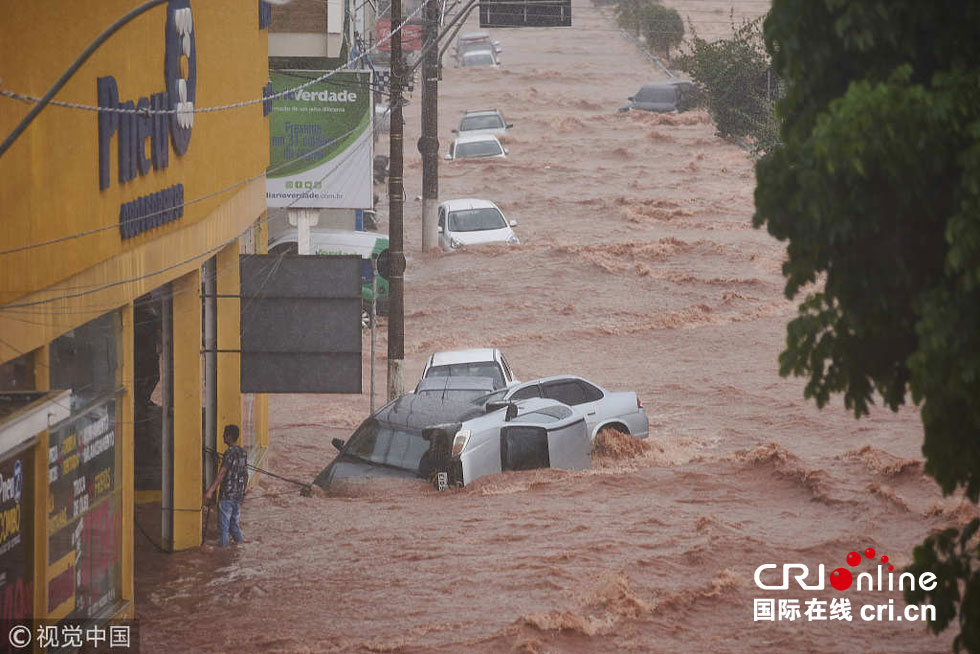巴西圣保罗遭暴雨袭击 街头洪水肆虐