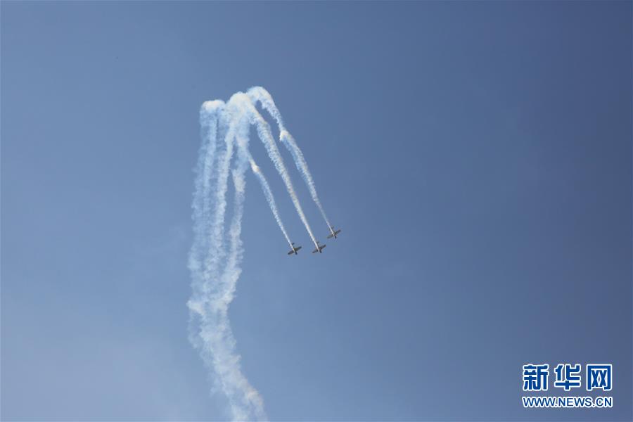 这是2月20日在印度班加罗尔拍摄的航空展上的飞行表演。 新华社记者姜磊摄