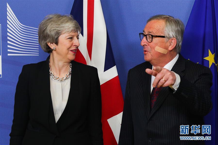 2月20日,在比利时首都布鲁塞尔,欧盟委员会主席容克(右)会见英国首相特雷莎⋅梅。 新华社记者 郑焕松 摄