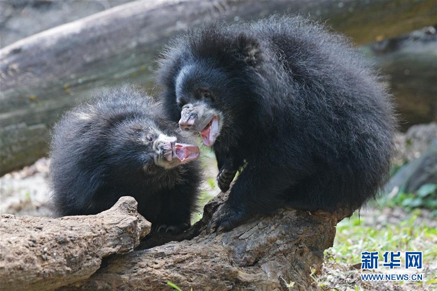 2月22日,两只懒熊幼崽在新加坡夜间动物园里活动。 新华社发(邓智炜摄)