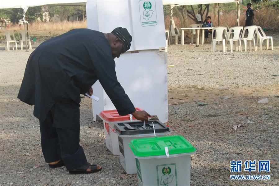 2月23日,在尼日利亚首都阿布贾,一位选民在投票点投票。 新华社记者 郭骏 摄