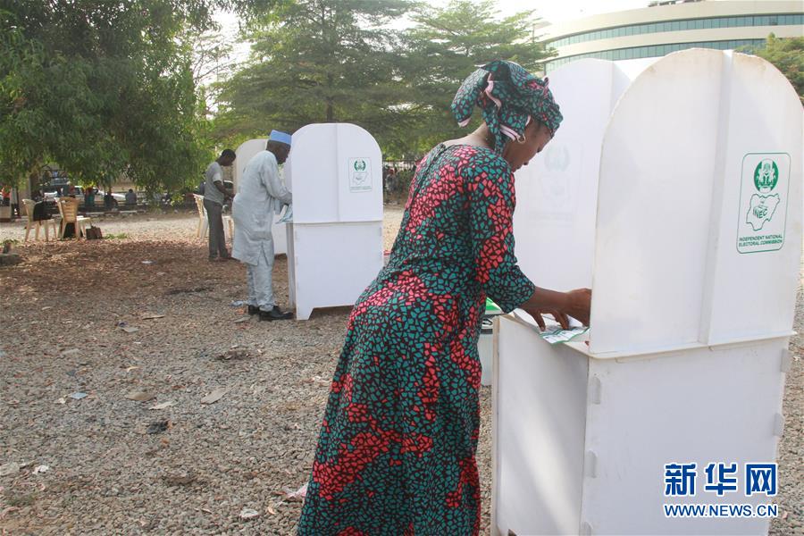 2月23日,在尼日利亚首都阿布贾,一位选民在投票点填写选票。 新华社记者 郭骏 摄