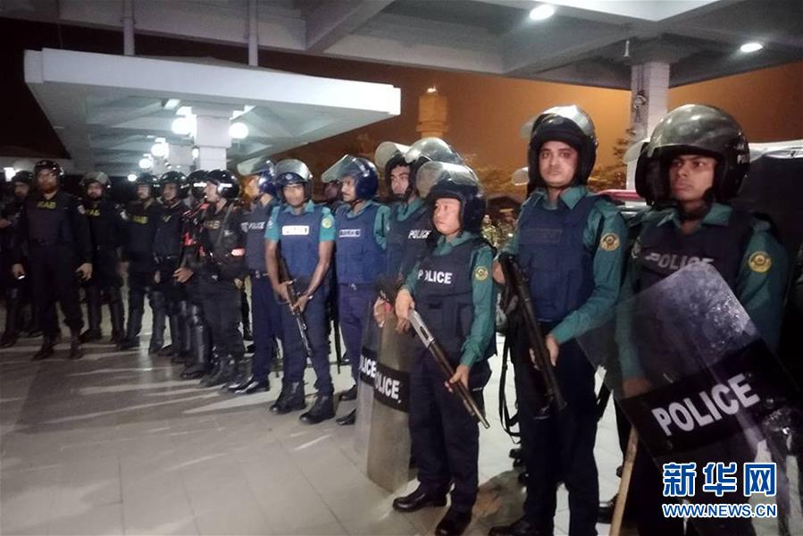 2月24日,警察在孟加拉国吉大港机场警戒。 新华社发