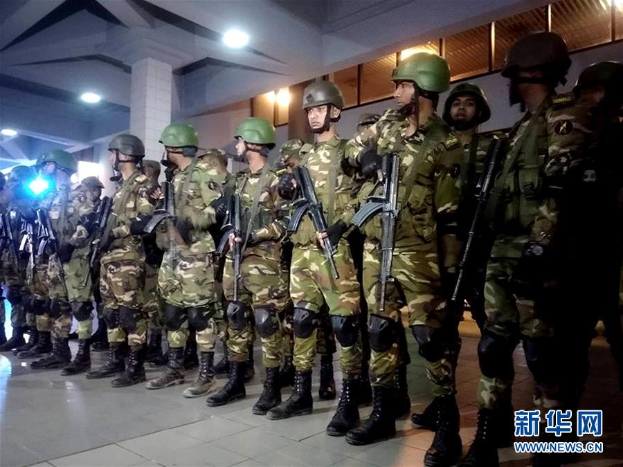 2月24日,军人在孟加拉国吉大港机场警戒。 新华社发