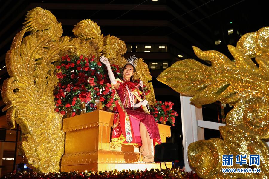 2月23日,在美国旧金山,2019年“全美华埠小姐”选美比赛冠军吴沛琳参加农历新年大巡游。新华社发(刘艺霖摄)