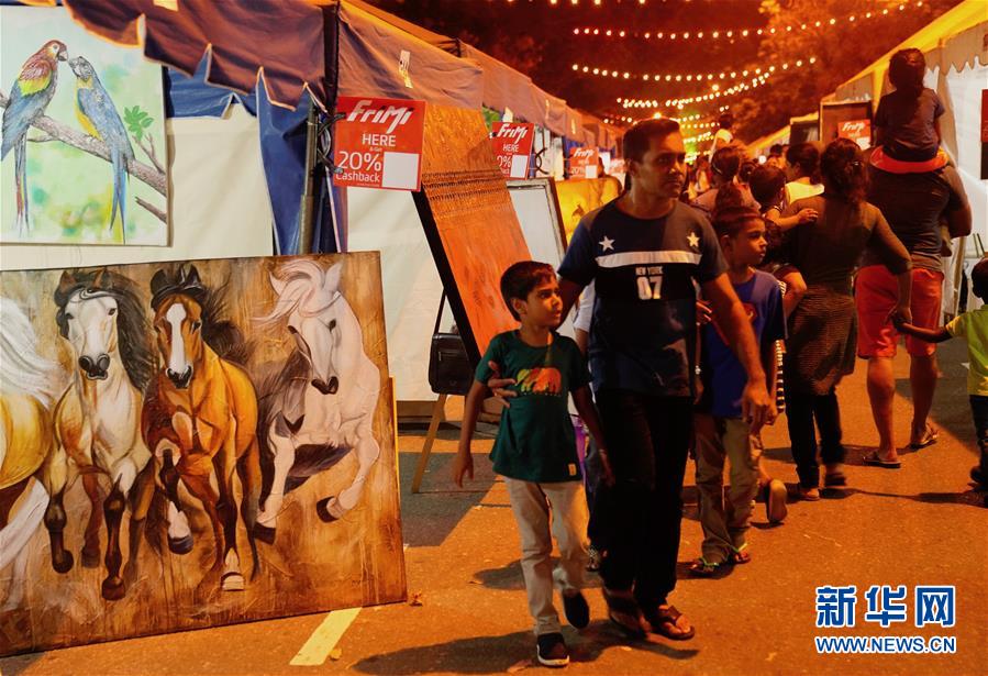 2月24日,在斯里兰卡科伦坡,人们在卡拉·波拉户外艺术展上参观。 斯里兰卡卡拉·波拉户外艺术展24日在首都科伦坡最富有艺术气息的街道“绿径”举行。 新华社记者唐璐摄