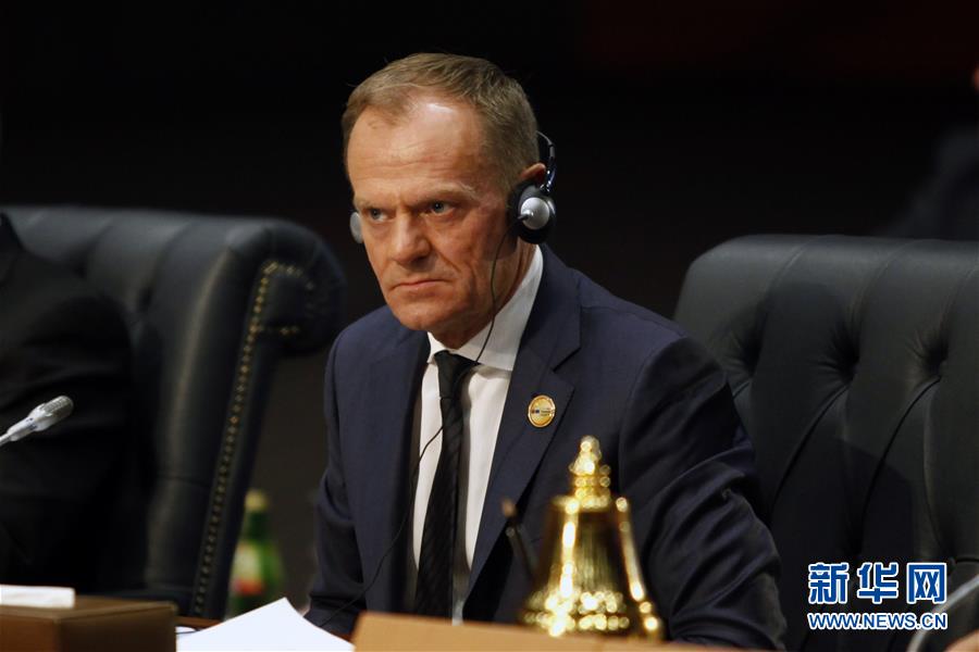 2月24日,在埃及沙姆沙伊赫,欧洲理事会主席图斯克出席首届阿拉伯国家联盟-欧洲联盟峰会。为期两天的首届阿拉伯国家联盟-欧洲联盟峰会24日在埃及红海海滨城市沙姆沙伊赫开幕,来自欧洲和阿拉伯国家的50多名领导人出席会议。新华社发(艾哈迈德·戈马 摄)