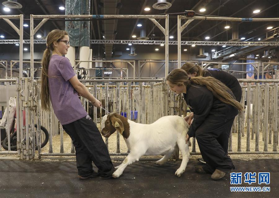 2月25日,在美国休斯敦,人们拉一只参赛的羊去洗澡。 一年一度的休斯敦牛仔节25日在美国休斯敦开幕。今年的牛仔节将持续至3月17日,其间每天都有丰富的活动。 新华社发(李怡今摄)
