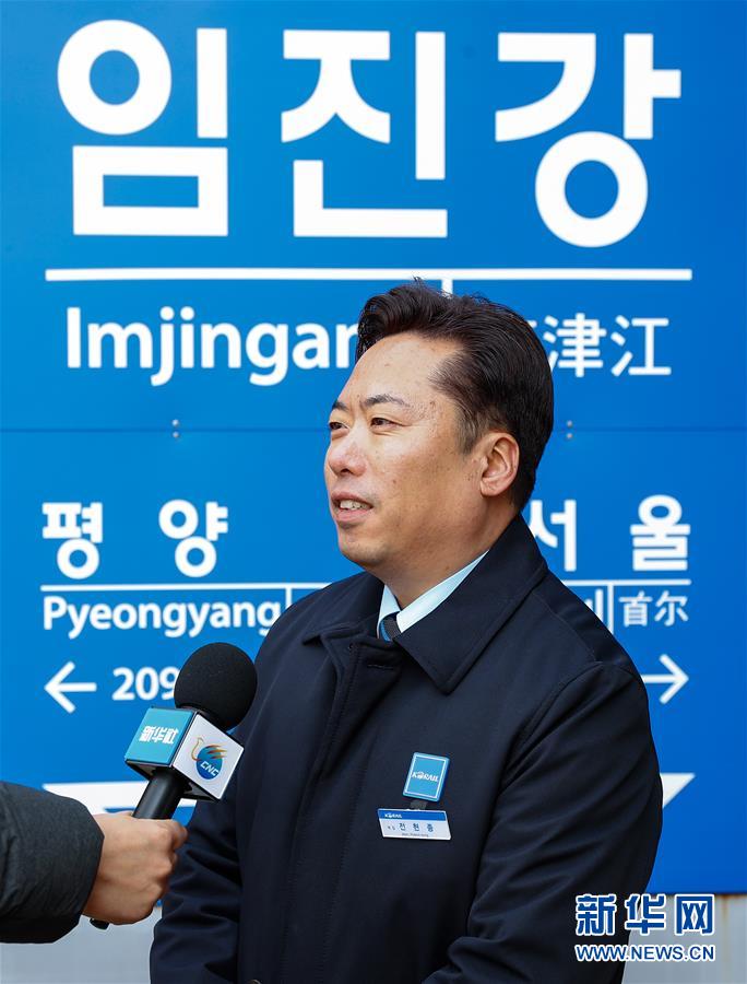 2月20日,临津江站站长钱贤钟接受新华社记者采访。由韩国首尔开往朝韩边境非军事区(DMZ)的“DMZ和平列车”通常在一天内往返于首尔与朝韩边境韩方一侧的都罗山站。游客可以乘车到作为朝韩缓冲隔离地带的非军事区游览,切身感受因战争而分裂的朝鲜半岛的现状。人们期待,这趟“和平列车”有朝一日能够迎来放行的“和平绿灯”,沿着铁路一路向北,朝着和平不断前行。 新华社记者 王婧嫱 摄