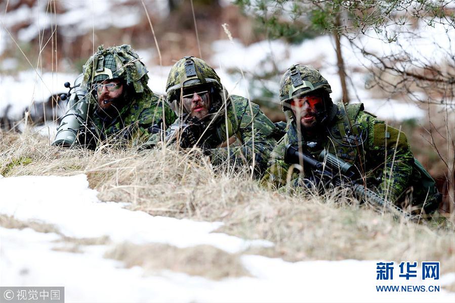当地时间2019年2月26日,拉脱维亚阿达日,北约多国军队举行联合军事演习。 (图片来源:视觉中国)
