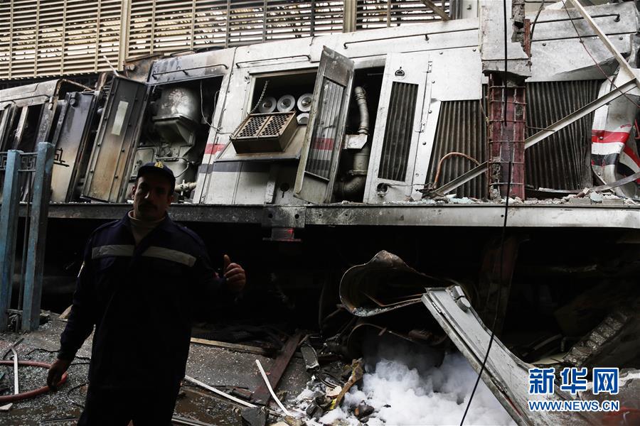 2月27日,在埃及首都开罗拉美西斯火车站,救援人员在火灾现场工作。 埃及首都开罗拉美西斯火车站2月27日上午发生火灾,已造成至少20人丧生、40人受伤。 新华社发(艾哈迈德·戈马摄)