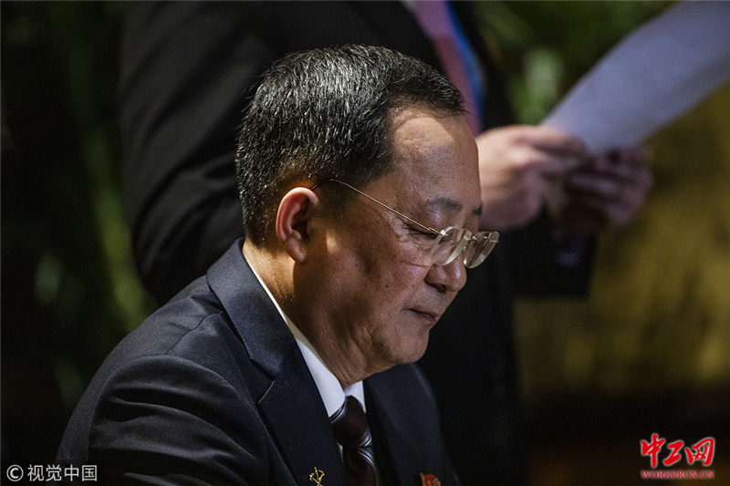 当地时间2019年2月28日,越南河内,朝鲜方面在朝美领导人第二次会晤结束的当天深夜,突然召开新闻发布会,由朝鲜外务相李勇浩发布消息称,朝方在会晤过程中,向美方提出了“现实的建议”,以关闭数处核设施换取美国解除部分对朝制裁,以涉及民生和民用经济方面的制裁内容优先。