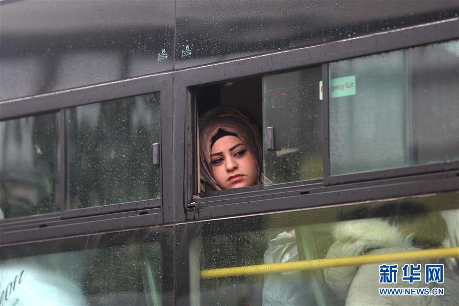2月28日,在位于黎巴嫩首都贝鲁特的一处集合地点,一名叙利亚难民妇女乘坐大巴,准备离开黎巴嫩。 新华社发(比拉尔⋅贾维希摄)