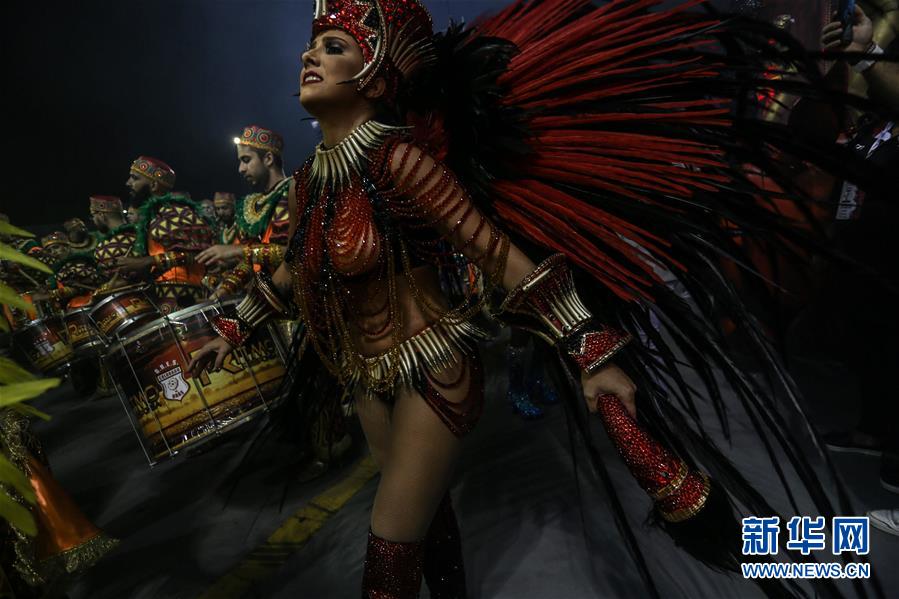 3月2日凌晨,在巴西圣保罗,桑巴舞校的演员参加狂欢节游行。 巴西圣保罗狂欢节庆祝活动1日正式展开。3月1日深夜至2日清晨,由特级桑巴舞学校进行的狂欢节游行在巴西圣保罗市进行。 新华社发(拉赫尔·帕特拉索摄)