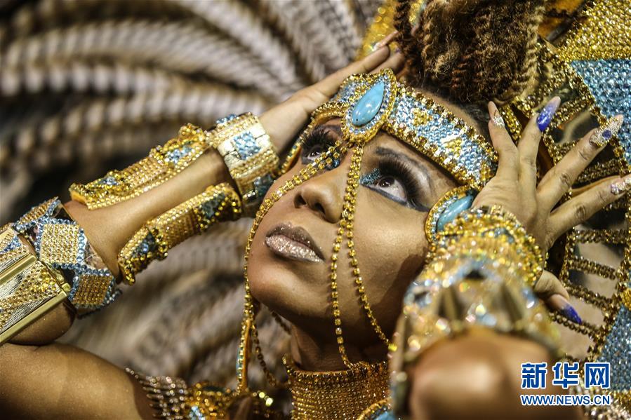3月2日凌晨,在巴西圣保罗,桑巴舞校的演员参加狂欢节游行。 巴西圣保罗狂欢节庆祝活动1日正式展开。3月1日深夜至2日清晨,由特级桑巴舞学校进行的狂欢节游行在巴西圣保罗市进行。 新华社发(拉赫尔·帕特拉索摄)