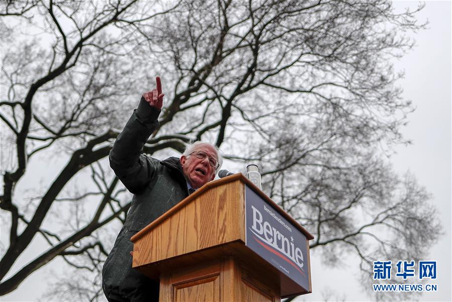 3月2日,在美国纽约,美国联邦参议员伯尼·桑德斯在总统竞选集会上发表讲话。 当日,宣布参加2020年美国总统选举的联邦参议员伯尼·桑德斯在纽约举行首场总统竞选集会。 新华社记者李木子摄