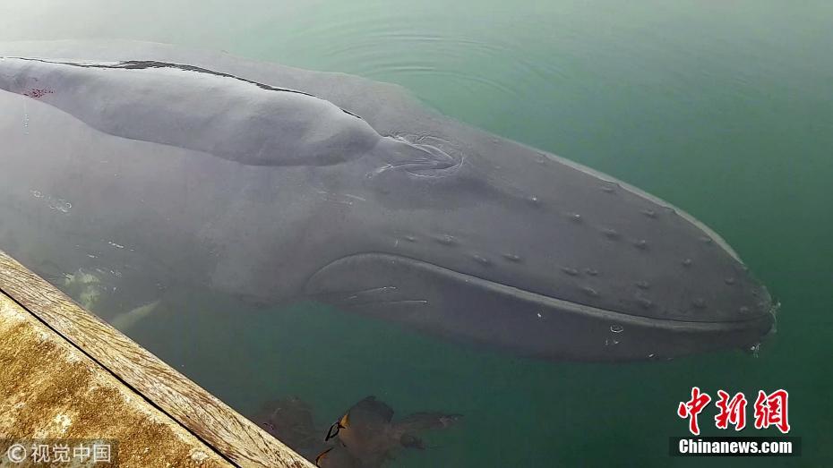 英国座头鲸被困浅水区数小时 因涨潮意外获救