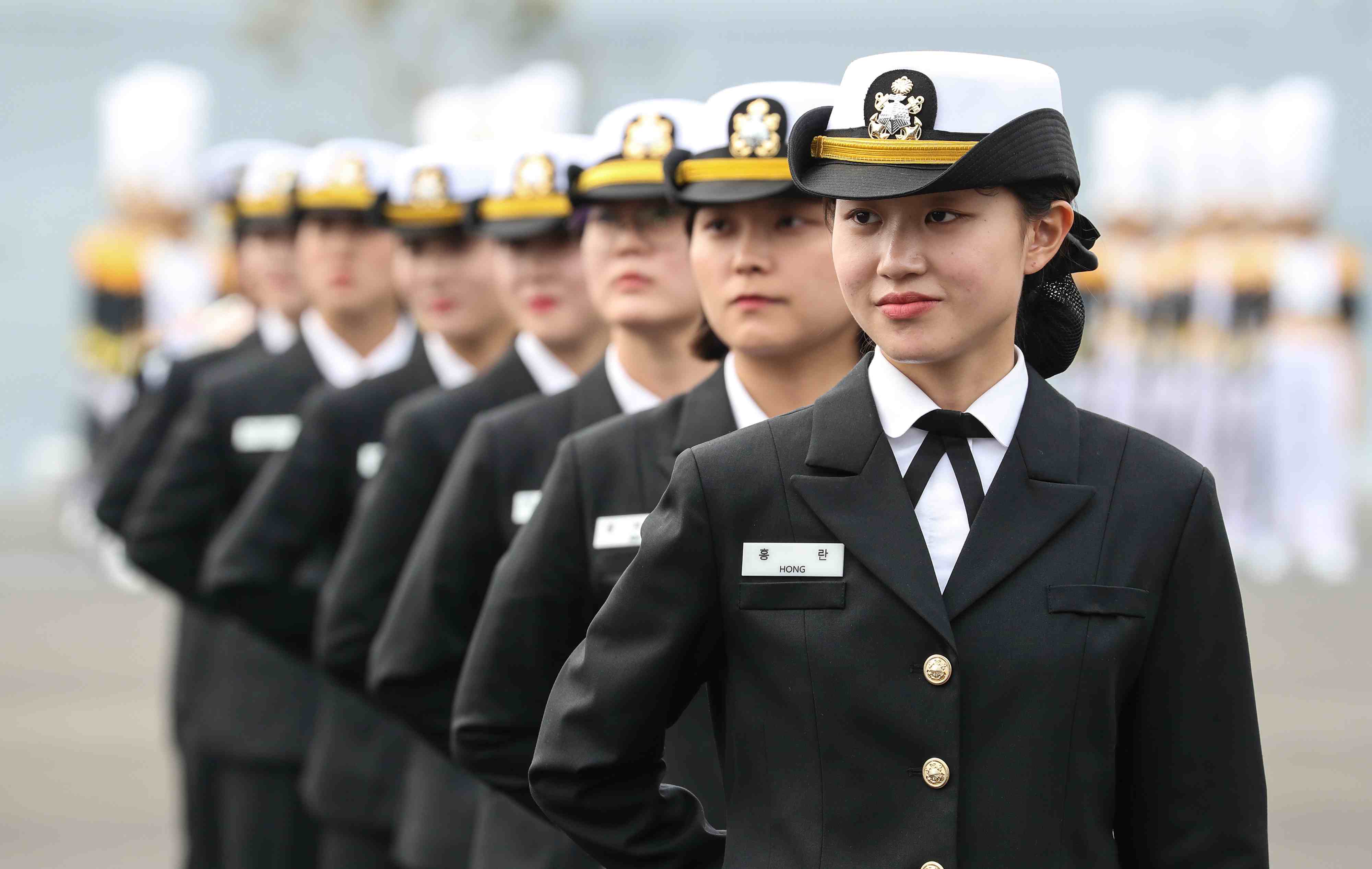 当地时间2019年3月5日,韩国庆尚南道昌原市,韩国总统文在寅出席海军士官学校第73届毕业典礼暨授衔仪式并发表贺词。文在寅夫妇还登上了“独岛”号登陆舰检阅舰艇仪仗队。