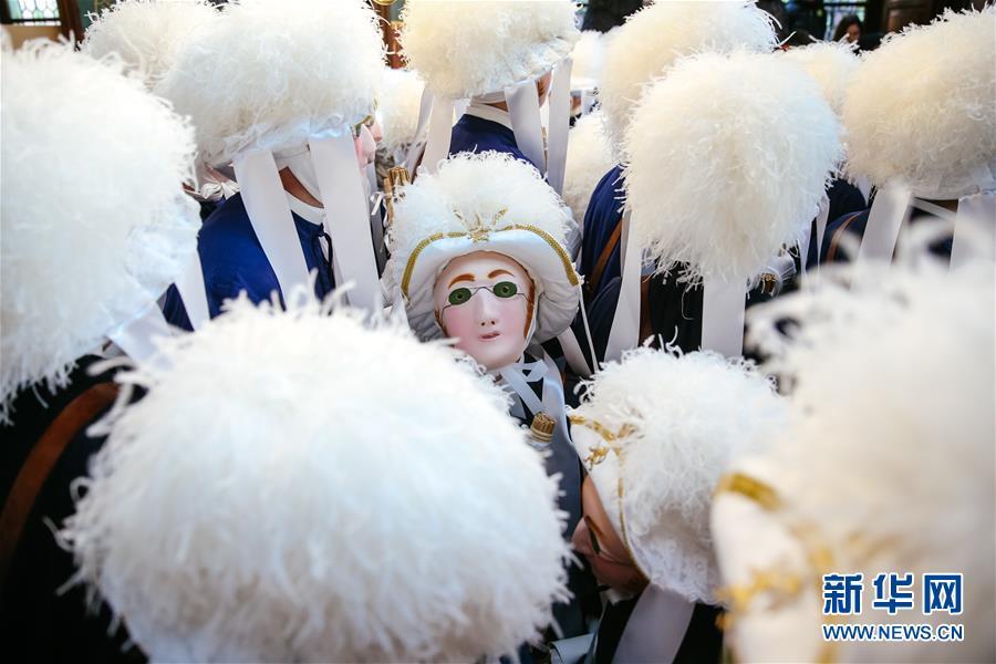 3月5日,在比利时南部小镇班什,当地居民装扮成“农夫”形象参加狂欢节。 当日是2019年比利时班什狂欢节的最后一天,也是高潮部分。起源于中世纪的班什狂欢节寓意辞旧迎新,并于2003年11月被列入联合国教科文组织非物质文化遗产名录。班什当地居民打扮成“憨人”“水手”“农夫”“小丑”等形象,和游客一起参与狂欢。“憨人”是吉祥与快乐的代言人,也是班什狂欢节最具标志性的形象。 新华社记者 张铖 摄