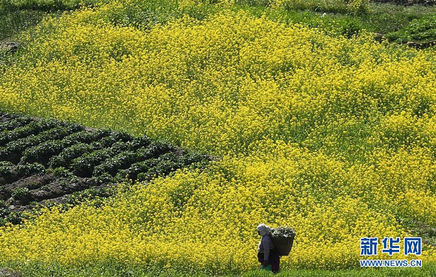 3月6日,在尼泊尔中部勒利德布尔附近的乡间,一名妇女从油菜花盛开的田边走过。 早春时节,尼泊尔中部谷地的传统农业区已是一派生机勃勃的景象。 新华社发(苏尼尔·夏尔马摄)