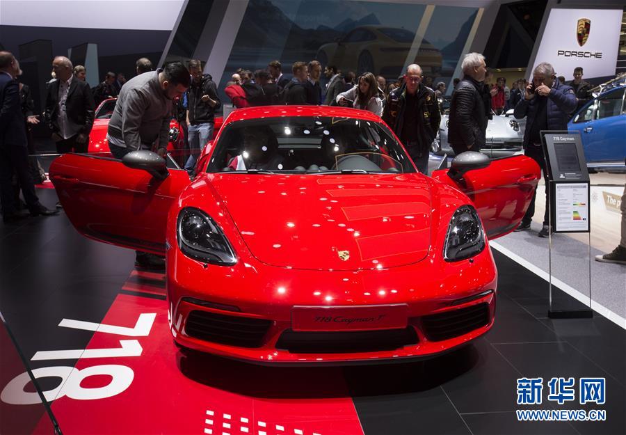 3月7日,在瑞士日内瓦国际车展上,人们观看保时捷718 Cayman T。 第89届日内瓦国际车展7日起正式对公众开放。作为每年最早开幕的欧洲车展,日内瓦车展素有汽车行业“风向标”之称,而在今年的展会上,这一“风向标”明确地指向电动化。 新华社记者徐金泉摄