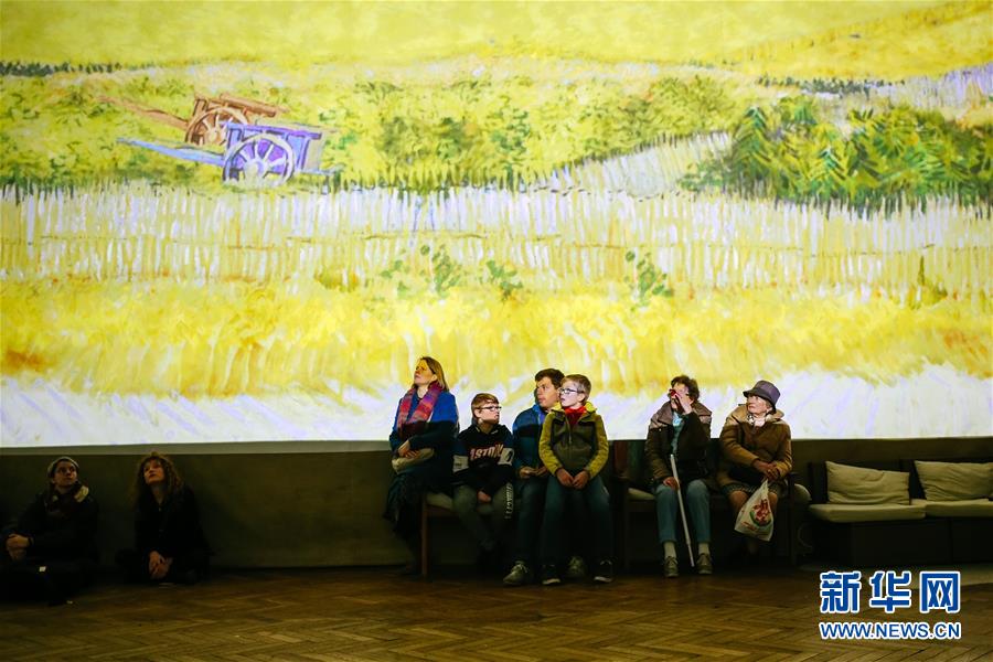 3月7日,在比利时布鲁塞尔,观众参观沉浸式梵高艺术展。比利时布鲁塞尔举办的沉浸式梵高艺术展运用声光电等方式展现荷兰画家梵高的作品,带给观众新颖的沉浸式艺术体验。展览自2018年10月开幕以来吸引了众多观众,展期延长至2019年3月10日。 新华社记者 张铖 摄