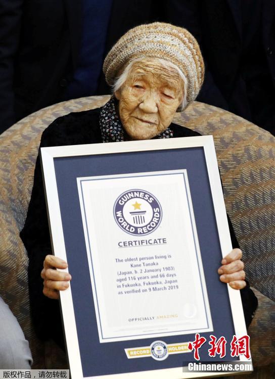 2019年3月9日,116岁的日本老人Kane Tanaka被吉尼斯世界纪录认定为世界上最长寿的人,也是世界上最长寿的女性。