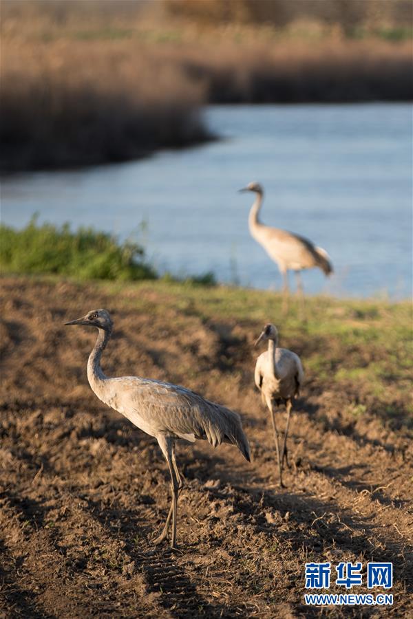 3月7日,在以色列阿格蒙胡拉鸟类和自然公园,几只灰鹤在水边休息。 位于以色列北端的胡拉谷地冬季气候相对温暖湿润,食物来源充足,是候鸟在欧洲和非洲之间迁徙的重要中转站。20世纪90年代,当地农民、以色列农业部和自然保护组织共同设立阿格蒙胡拉鸟类和自然公园,在指定的地点给候鸟喂食,既能保护周边农田的庄稼不被候鸟啄食,又能为迁徙的候鸟补充之后旅程所需的能量,成为候鸟“加油站”。 新华社记者 郭昱 摄