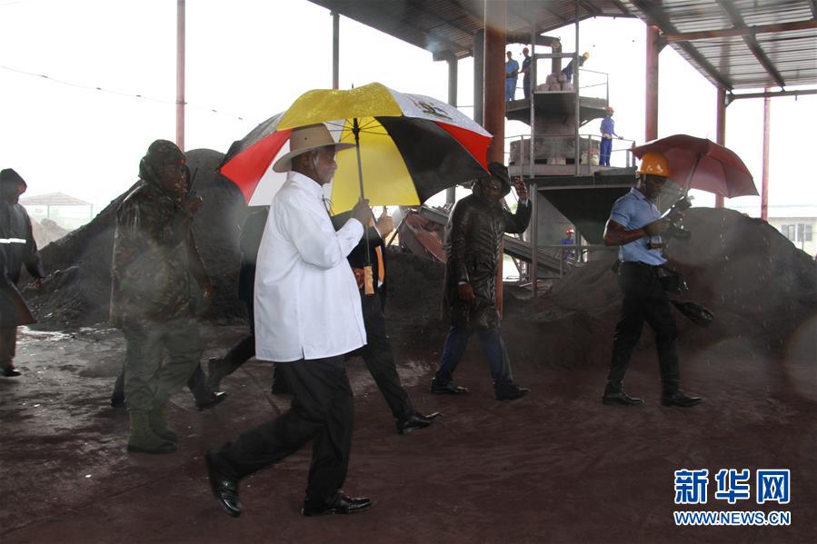 3月9日,在乌干达中部穆科诺地区,乌干达总统穆塞韦尼(前)参观工业园。 乌干达总统穆塞韦尼9日在乌中部穆科诺地区参观中国企业投资的工业园区及工厂时表示,感谢中国投资者选择乌干达,乌政府将降低企业生产成本,改善营商环境。 新华社记者 张改萍 摄