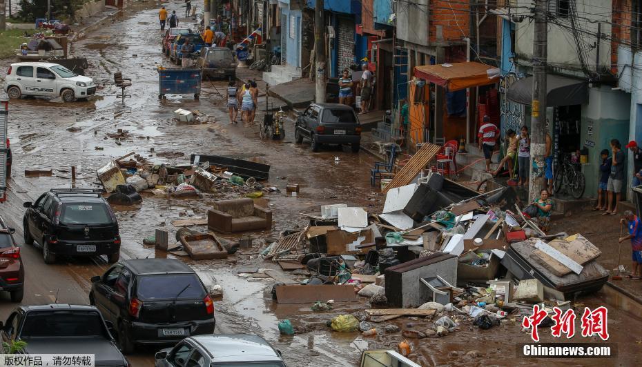 巴西遭暴雨袭击致多人丧生 街道水泡杂物淤积