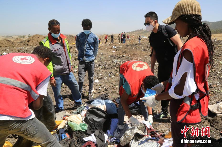 3月12日,埃塞俄比亚航空公司失事航班ET302的救援工作基本结束。图为救援人员在事故现场整理遇难者遗物。中新社记者 王曦 摄