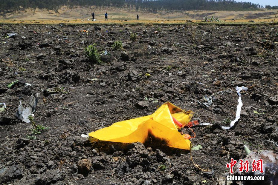3月12日,埃塞俄比亚航空公司失事航班ET302的救援工作基本结束。图为事故现场散落的救生衣。中新社记者 王曦 摄