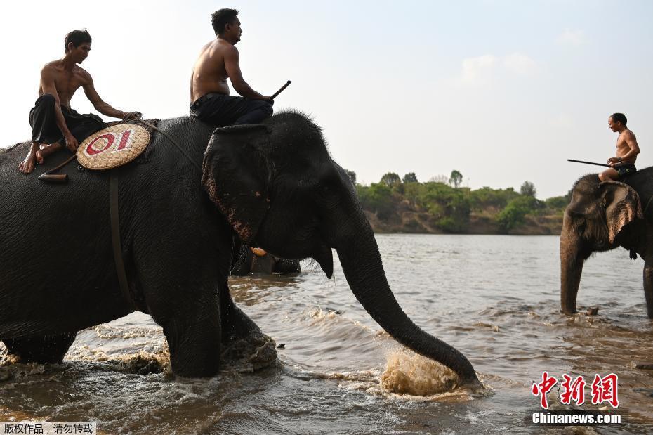 越南举办大象“赛跑”活动 比赛现场烟尘滚滚