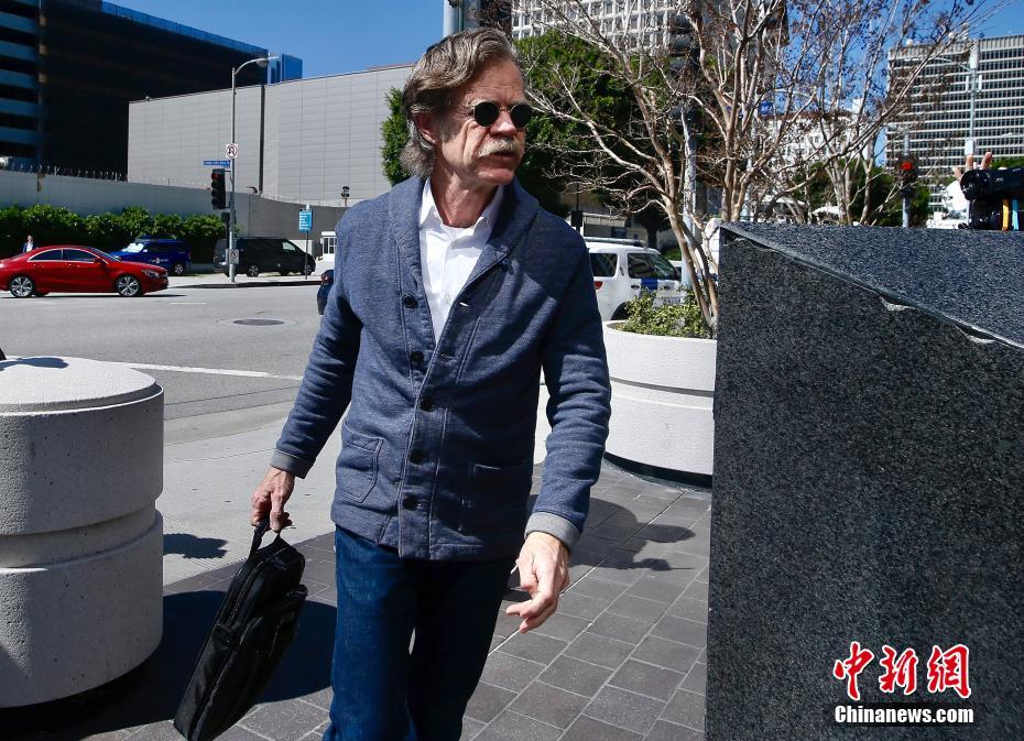 据报道,美国检方当天就一起牵涉多所知名高校的招生欺诈案提起诉讼,来自六个州的近50人被起诉,其中包括好莱坞影星菲丽西提·霍夫曼和洛莉·路格林。图为好莱坞影星菲丽西提·霍夫曼的丈夫威廉·H·梅西出现在波士顿联邦法院外。