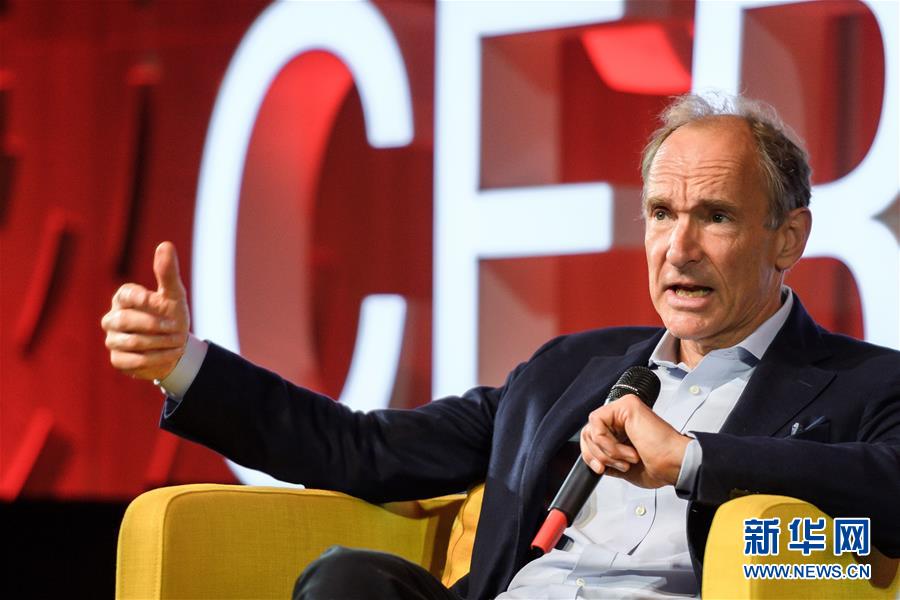 3月12日,在瑞士日内瓦郊外的欧洲核子研究中心,“万维网之父”蒂姆·伯纳斯-李在万维网诞生30周年庆祝活动上讲话。新华社发(法布里斯摄)